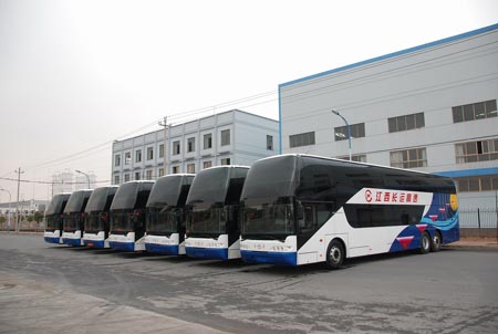 12月22日,江西長運向青年汽車購買的10輛雙層豪華大巴駛出了雪片紛飛的金華,奔赴江西,即將在南昌—贛州和南昌—吉安兩條線路上投入運營。江西長運也成了江西省率先引進青年雙層豪華大巴應(yīng)對高鐵競爭的運輸企業(yè)。