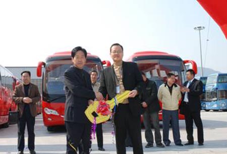 2009年1月15日上午,大金龍15輛捷冠系列XMQ6800Y中巴交付黔南交運有限責任公司發(fā)車儀式在大金龍廠區(qū)舉行。貴州黔南交運有限責任公司董事長羅寧、大金龍副總經(jīng)理徐向東等領(lǐng)導出席了交車儀式。