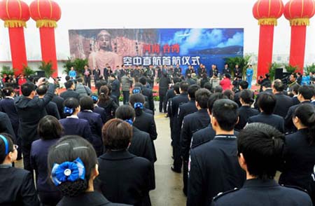 近日,豫臺兩地民眾期盼已久的河南至臺灣空中直航得以實現(xiàn),由宇通客車自主研制的ZK6140BD新款機場擺渡車承擔(dān)了運送貴賓的光榮使命,130多名旅客搭乘從鄭州新鄭機場起飛的直航航班飛抵臺北。河南省委書記徐光春等為首航剪彩,并為首航旅客送行。此次河南、臺灣實現(xiàn)空中直航,拉近了河南與臺灣的距離,使豫臺兩地實現(xiàn)了真正意義上的“一日生活圈”,節(jié)約了兩地交流的時間和成本,這是實實在在惠及兩岸同胞的好事,今后將會有更多的臺商到河南投資創(chuàng)業(yè)、安家落戶。