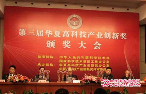 【中國客車信息網(wǎng)訊】2009年3月21日,第三屆華夏高科技產(chǎn)業(yè)創(chuàng)新獎頒獎大會在國務(wù)院新聞辦公室舉行。山東煙臺的中上汽車有限公司謝镕安、程紹良開展的中上新能源電容牽引型快速充電純電動城市客車(公交電車)研發(fā)、產(chǎn)業(yè)化暨推廣運行項目榮獲第三屆華夏高科技產(chǎn)業(yè)特別創(chuàng)新獎。