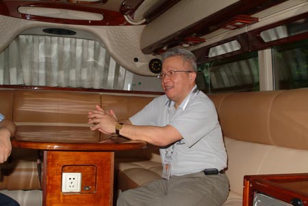 參與服務的大型豪華商務車“斯堪尼亞海格A80”引起許多與會人士的興趣,臺灣“中央銀行經濟研究處處長”嚴宗大先生在乘坐該車去博鰲論壇國際會議中心時,還饒有興趣地和參與服務的海格工作人員交流,得知此款具有歐洲血統(tǒng)的豪華客車是蘇州生產時,嚴先生十分高興,表示蘇州是他十分喜歡的地方。他介紹說在臺灣也有很多斯堪尼亞客車,但是如此高檔的客車,在臺港也很少見。