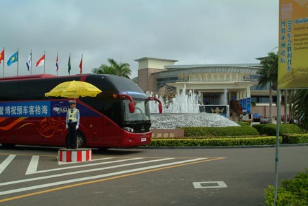 選擇大巴與會,成為本屆博鰲亞洲論壇的一股流行風。這種風尚給正經受經濟嚴冬的全球經濟帶來一絲暖意。