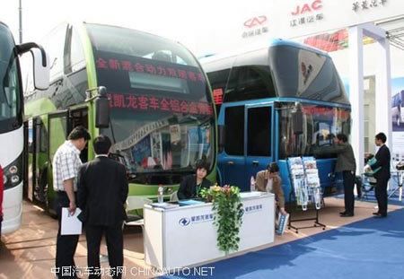 此次中博會上各客車廠家推出的展車均以“綠色、節(jié)能、環(huán)?!睘橹饕攸c(diǎn),由此可見擔(dān)負(fù)城市交通環(huán)保重任的城市客車在“公交優(yōu)先”的政策下也越來越被社會所關(guān)注。安凱車輛公司此次攜首款“星凱龍”混合動力客車HFX6110GSHEV亮相中博,就以其時尚的外型、高承載力及更環(huán)保的燃料形式艷驚四座,前來登車參觀、詢問的客商絡(luò)繹不絕。