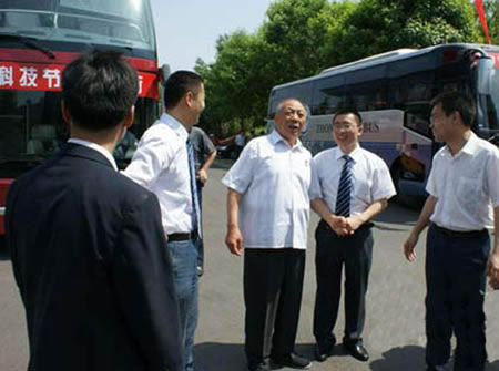 5月8日,中通客車(chē)2009年全國(guó)巡展在山東濟(jì)南正式啟動(dòng),山東省道路運(yùn)輸協(xié)會(huì)會(huì)長(zhǎng)龔學(xué)智等省市領(lǐng)導(dǎo)以及來(lái)自山東交運(yùn)集團(tuán)、濟(jì)南長(zhǎng)運(yùn)、濟(jì)南公交總公司以及魯北地區(qū)眾多嘉賓共同出席了啟動(dòng)儀式。中通客車(chē)總經(jīng)理時(shí)洪功、副總經(jīng)理賈開(kāi)潛與與會(huì)領(lǐng)導(dǎo)和嘉賓一同為啟動(dòng)儀式揭幕。本次巡展活動(dòng)的主題為“360°科技節(jié)能神州行”,通過(guò)新品揭幕、技術(shù)交流、客戶(hù)懇談等活動(dòng),向客戶(hù)宣傳中通客車(chē)先進(jìn)的節(jié)能理念和技術(shù)。