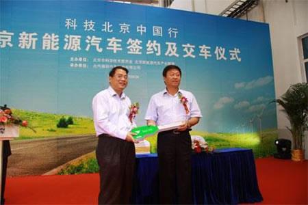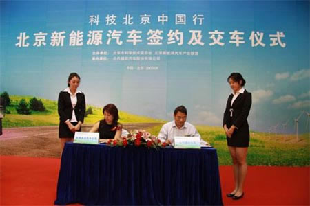 2009年6月20日上午,由北京市科學(xué)技術(shù)委員會(huì)和北京新能源汽車產(chǎn)業(yè)聯(lián)盟共同主辦的“科技北京中國(guó)行”活動(dòng)在福田汽車節(jié)能減排重點(diǎn)實(shí)驗(yàn)室正式啟動(dòng), 在以“北京新能源汽車簽約及交車儀式”為啟動(dòng)儀式的“科技北京中國(guó)行”活動(dòng)現(xiàn)場(chǎng),臺(tái)灣成運(yùn)汽車公司和福田汽車正式簽訂了采購(gòu)75臺(tái)歐V混合動(dòng)力新能源客車的購(gòu)買合同,歐V新能源客車將于近期首次登陸寶島臺(tái)灣,這是福田新能源汽車產(chǎn)業(yè)化進(jìn)程的又一重要事件,在儀式上,福田汽車還向北京市西城區(qū)環(huán)衛(wèi)處等3家用車單位交付了新能源汽車產(chǎn)品。這些豐碩的技術(shù)和市場(chǎng)成果標(biāo)志著福田汽車響應(yīng)北京市委、市政府的號(hào)召,致力節(jié)能減排、服務(wù)“人文北京、科技北京、綠色北京”又取得了新的進(jìn)展。
