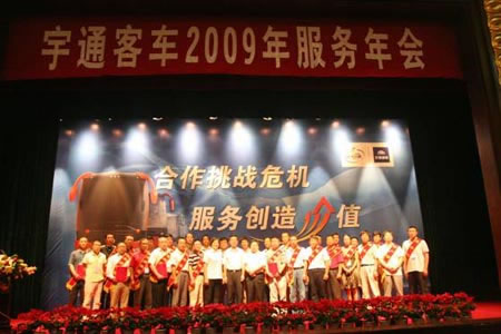2009年國際、國內(nèi)經(jīng)濟都是更加充滿挑戰(zhàn)的一年。上半年,因國內(nèi)客運量下滑、公交車市場增速低于預(yù)期和出口大幅降低等因素制約,我國客車銷量也基本上在低位徘徊。在此背景下,宇通客車2009年服務(wù)年會于6月20日在綠城鄭州舉行。以“合作挑戰(zhàn)危機、服務(wù)創(chuàng)造價值”為主題,來自全國各地的400余家宇通服務(wù)站,按照全國南北區(qū)域共分兩批參加了此次服務(wù)大會。