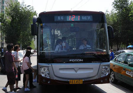 6月25日,首班121路混合動力公交車正在運(yùn)載乘客。當(dāng)日,首批50輛新能源混合動力公交車進(jìn)入北京121路和414路兩條公交線路的實(shí)際運(yùn)行。這些車輛全部達(dá)到歐4排放標(biāo)準(zhǔn),具有低噪聲、低能耗、污染小等特點(diǎn),每百公里油耗與同級別的柴油公交車相比降低20%以上。