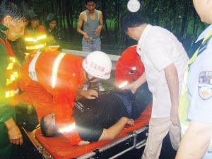 由于高速公路兩側(cè)坡面過(guò)于泥濘濕滑,急救車(chē)提供的滑輪式擔(dān)架無(wú)法發(fā)揮作用,消防官兵立即取來(lái)多功能救援擔(dān)架,首先將駕駛員固定于擔(dān)架之內(nèi),然后利用高速公路兩側(cè)的水泥排水溝,在路面人員的幫助下,順利將受傷人員拉上路面并合力抬上急救車(chē)送往醫(yī)院急救。此后,消防官兵再次對(duì)車(chē)廂內(nèi)進(jìn)行地毯式搜尋,確認(rèn)現(xiàn)場(chǎng)已無(wú)人員被困后,消防官兵返回。整個(gè)救援過(guò)程持續(xù)了近半個(gè)小時(shí)。