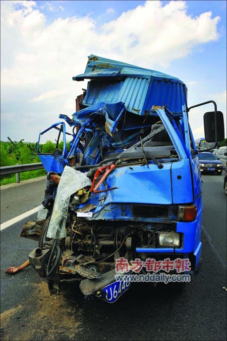 貨車車頭撞得面目全非。
