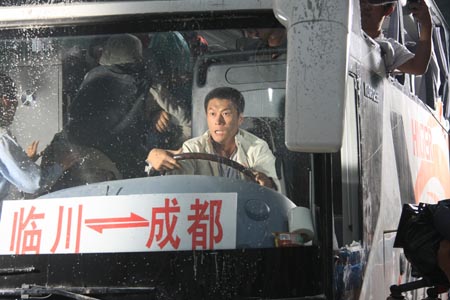 然而決定是下了,在資金上面卻無法實(shí)現(xiàn),一輛大客車動(dòng)輒幾十萬上百萬,作為一部低成本影片,《生死時(shí)刻》承受不起如此巨大的開支。特別是在拍攝過程中要模擬地震時(shí)亂石墜落的場(chǎng)景,需要砸壞大客車的車窗和部分車身,租賃車輛的方法也行不通。