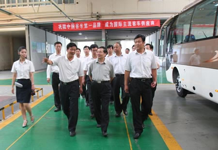 7月18日,工業(yè)和信息化部副部長(zhǎng)楊學(xué)山一行10人,在鄭州市委副書(shū)記、市長(zhǎng)趙建才,河南工業(yè)和信息化廳廳長(zhǎng)楊盛道,鄭州市副市長(zhǎng)孫金獻(xiàn)等省市領(lǐng)導(dǎo)陪同下調(diào)研宇通。