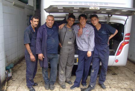 天還未放亮,我們執(zhí)意要去修理故障客車。來到停車場,記下車號、里程、發(fā)動機等,經(jīng)試驗機油壓力報警并甩機油。我們調(diào)整了機油壓力并更換機油濾清器,故障排除??吹胶8袢说囊唤z不茍, “中國人能干”、“海格客車買得值”,這是卡巴希說得最多的話。