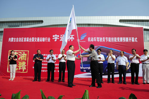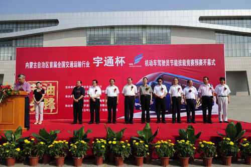 8月17日起,來自內(nèi)蒙古12個(gè)地區(qū)的38名交通運(yùn)輸業(yè)駕駛高手,將在青城呼和浩特展開一場“節(jié)能駕駛”的精彩較量,首屆全國交通運(yùn)輸行業(yè)“宇通杯”機(jī)動(dòng)車駕駛員節(jié)能技能競賽內(nèi)蒙古賽區(qū)選拔賽的帷幕由此拉開。當(dāng)天上午,活動(dòng)開幕式在內(nèi)蒙古國際會(huì)議展覽中心廣場上盛大舉行,自治區(qū)交通廳副廳長姜革鋒、交通專業(yè)人員資格評價(jià)中心副主任楊利華、宇通集團(tuán)黨委副書記饒金有等有關(guān)領(lǐng)導(dǎo)出席儀式并講話。
