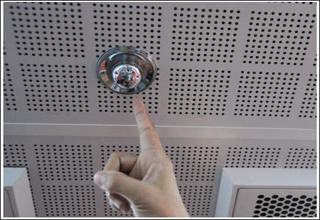 該防火型公交樣車由成都市目前最通用的普通空調(diào)公交車改裝而成,頂棚中間一線鑲嵌了9個直徑約10厘米的噴頭;緊鄰后車門的座椅邊設(shè)有一個高約10厘米、長寬約80厘米的鋼質(zhì)水箱;駕駛座左手是操作紐,分別顯示“干粉”、“噴淋”字樣。如果啟動“噴淋”防護(hù)按鈕,由水和特殊泡沫滅火劑組成的滅火劑就會在5秒之內(nèi),呈水霧狀噴淋出來并在1分鐘內(nèi)撲滅車廂內(nèi)明火;而如果是發(fā)動機(jī)或者油箱起火,按下“干粉”按鈕,干粉滅火劑同樣會在5秒內(nèi)噴射,1分鐘內(nèi)控制火情。