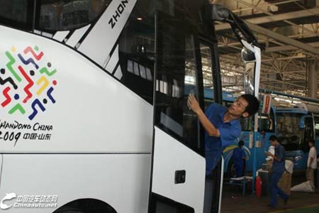 在首批訂單確定后,為了及時(shí)排解生產(chǎn)中出現(xiàn)的各種問題,技術(shù)人員在施工現(xiàn)場(chǎng)與工人一同工作,為了做好一個(gè)安裝,處理好一個(gè)細(xì)節(jié)積極的想辦法,并多次驗(yàn)證以達(dá)到做好的效果。其中,從7月1日到12日短短的十二天里就成功交付了LCK6129HBA\LCK6125H-2的樣車,并完全達(dá)到了各項(xiàng)技術(shù)質(zhì)量要求。中通技術(shù)人員力求為全運(yùn)會(huì)打造專車,對(duì)兩款車的前圍、內(nèi)飾、座椅、空調(diào)等進(jìn)行了優(yōu)化,以符合運(yùn)動(dòng)員的乘坐特點(diǎn)。經(jīng)過第一階段的服務(wù),精心研制的全運(yùn)會(huì)服務(wù)用車獲得了廣大運(yùn)動(dòng)員的認(rèn)可,真正做到了“一款座椅空間足夠?qū)挸?,?nèi)飾足夠豪華,乘坐足夠舒服的旅游客車”的目標(biāo)。