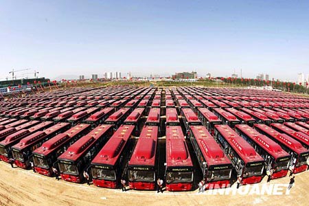 當(dāng)天,石家莊市將新購置的600輛新型天然氣公交車在26條公交線路投入試運行,方便市民出行。