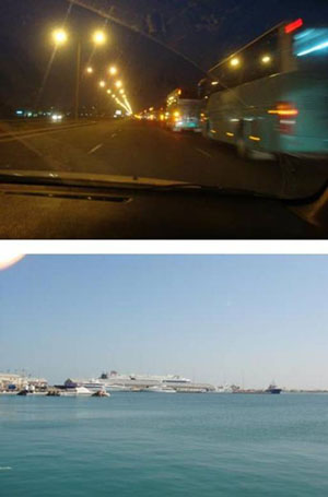 8月14號(hào)早上2點(diǎn),400臺(tái)車(chē)發(fā)車(chē)儀式的演習(xí)。1點(diǎn)50分,600多人已經(jīng)在Mowasalat公司停車(chē)場(chǎng)集合完畢,整裝待發(fā)。一聲令下,400臺(tái)車(chē)悉數(shù)啟動(dòng),打開(kāi)車(chē)燈,從停車(chē)場(chǎng)魚(yú)貫而出。那一刻,400臺(tái)發(fā)動(dòng)機(jī)的轟鳴聲,何其壯觀。海格V90大巴一臺(tái)接著一臺(tái)駛出Mowasalat公司,靚麗的外形和路燈相映成輝。整個(gè)發(fā)車(chē)演習(xí)途經(jīng)卡塔爾主要的干道,環(huán)繞在波斯灣的濱海大道。演習(xí)途中有5臺(tái)車(chē)輛由于車(chē)速過(guò)快而撞壞了前后大燈。中午時(shí)分,車(chē)隊(duì)順利返回Mowasalat公司。