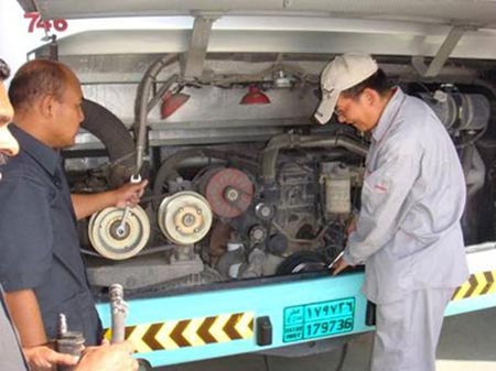 卡塔爾交通公司接到王室命令后,緊急成立項(xiàng)目組,由總經(jīng)理?yè)?dān)任總指揮,協(xié)調(diào)運(yùn)營(yíng)、維修和后勤保障等資源,抽調(diào)400臺(tái)海格V90大巴、500名司機(jī)和50名車(chē)隊(duì)長(zhǎng)開(kāi)始了不分晝夜的培訓(xùn)和演練,同時(shí)Mowasalat海格服務(wù)站負(fù)責(zé)400臺(tái)車(chē)輛的維修和保養(yǎng)。由于正值學(xué)校放暑假,400臺(tái)服務(wù)學(xué)校的V90大巴已經(jīng)在沙漠大停車(chē)場(chǎng)休息了2個(gè)多月,車(chē)輛每天在55度以上的高溫中暴曬和沙塵暴的不斷侵襲,車(chē)輛狀況參差不齊??ㄋ柦煌ü痉?wù)站抽調(diào)專(zhuān)人和海格駐當(dāng)?shù)胤?wù)工程師共同組成服務(wù)團(tuán)隊(duì),確保所有車(chē)輛達(dá)到最佳工作狀態(tài)。