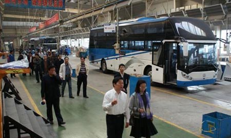 座談會后,到訪客人在中通公司領(lǐng)導(dǎo)的陪同下參觀了展車以及生產(chǎn)現(xiàn)場。客人們在看到貼著奧運圖案一輛中通客車,當(dāng)?shù)弥@是08年中通服務(wù)奧運會的純電動客車時,客人們紛紛登上參觀。值得驕傲的事,在正在舉行的第十一屆全運會,中通客車有80輛新能源客車以及200多輛豪華大巴進(jìn)行服務(wù)。
