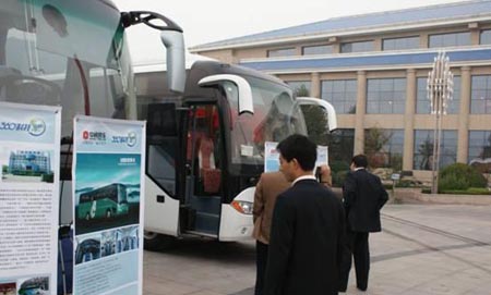 會議現(xiàn)場的中通客車吸引與會領(lǐng)導(dǎo)參觀