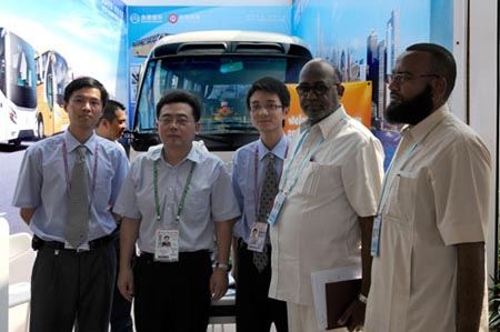 廈門(mén)金旅公司此次攜旗下XML6700考斯特車(chē)型首次現(xiàn)身廣交會(huì),借助這一國(guó)際貿(mào)易的重要平臺(tái)進(jìn)行對(duì)外展示與宣傳。此次品牌展位布置精致得當(dāng),位于展位中的XML6700考斯特憑借其優(yōu)美的外觀(guān),良好的性能,極高的性?xún)r(jià)比吸引了來(lái)自世界各國(guó)和地區(qū)的采購(gòu)商前來(lái)參觀(guān)咨詢(xún)。盡管廣州現(xiàn)場(chǎng)的室外氣溫將近30度,但金旅工作人員仍然在烈日酷熱中“練攤”,不放過(guò)任何哪怕細(xì)微的商機(jī)。與此同時(shí),通過(guò)對(duì)現(xiàn)場(chǎng)展車(chē)的參觀(guān)和詳細(xì)了解,許多采購(gòu)商紛紛表明了采購(gòu)意向,并希望有機(jī)會(huì)來(lái)公司進(jìn)行實(shí)地訪(fǎng)問(wèn)以尋求更進(jìn)一步的合作。