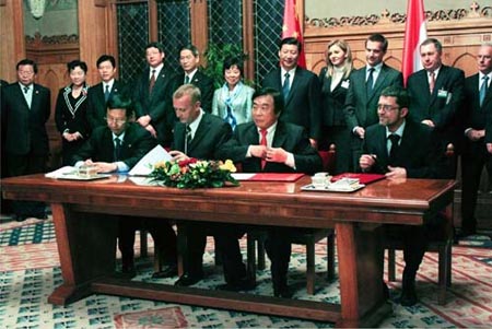 10月中旬,為深化中歐全面戰(zhàn)略伙伴關(guān)系,進(jìn)一步推動(dòng)中歐各領(lǐng)域互利合作、穩(wěn)定發(fā)展,加強(qiáng)中歐人民的人文交流,中國(guó)國(guó)家副主席習(xí)近平與國(guó)家外交部、發(fā)改委、商務(wù)部等部委領(lǐng)導(dǎo)一行前往歐洲五國(guó)進(jìn)行為期兩周的友好訪(fǎng)問(wèn)。并于16日與匈牙利總理鮑伊瑙伊共同出席了在布達(dá)佩斯國(guó)會(huì)大廈舉行的合作協(xié)議簽約儀式及中匈企業(yè)家座談會(huì)。廈門(mén)金龍旅行車(chē)有限公司應(yīng)中華人民共和國(guó)商務(wù)部邀請(qǐng),與中國(guó)一汽-大眾汽車(chē)有限公司、中國(guó)機(jī)械設(shè)備進(jìn)出口公司等幾家由國(guó)家商務(wù)部確定的具有行業(yè)代表性的優(yōu)秀出口基地企業(yè)共同出席了本次活動(dòng)。