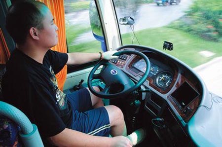 初見這款客車并沒有太顯眼之處,整車設計以簡單為主,其款式沿襲了幾年前的風格,與蘇州金龍其它系列的產(chǎn)品相比,缺少了華麗的外表與柔美的線條。該車的內(nèi)飾設計也走簡潔路線,突出實用性。駕駛區(qū)儀表板的做工簡潔明了,但電控元件都觸手可及。此外,其轉(zhuǎn)向盤及變速器都較易操控。6檔變速器的檔位非常清晰,在試駕過程中沒有出現(xiàn)過找不到檔位影響操作的情況發(fā)生。