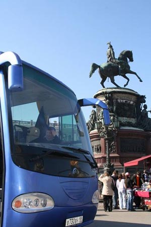 停在圣彼得堡廣場上的宇通客車
