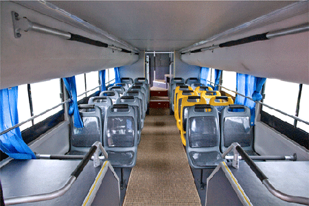 HFF6121KZ-2超寬車身設(shè)計(jì)、車身寬度達(dá)到2.55m,,座位3+2排列, 通過對乘客椅空間和布局的合理優(yōu)化,在保持坐乘舒適度的同時,實(shí)現(xiàn)了座椅“3+2式”布局,最多座位數(shù)能達(dá)到67人,使載客效率提升了近50%。整車設(shè)有前單后雙外擺門,方便了乘客上下車,更適用于多流量的城郊線路。應(yīng)用人體工程學(xué)設(shè)計(jì)座椅,充分契合中國人體形特征,椅背與脊椎無縫隙貼合,在長時間坐乘中可有效降低人體疲勞感;而4.5立方米的貫通式行李倉能存放大批的行李,同時,獨(dú)立的司機(jī)圍設(shè)計(jì)和彌散式風(fēng)道出風(fēng)口,使整車車廂內(nèi)冷氣均勻、舒適,防止車廂內(nèi)冷風(fēng)過強(qiáng)而引起乘客不適。
