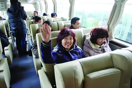 乘客坐上首趟豪華客車,感覺很興奮?! ?/P>
