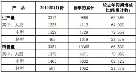 鄭州宇通客車(chē)股份有限公司2010年4月份產(chǎn)銷(xiāo)數(shù)據(jù)如下: