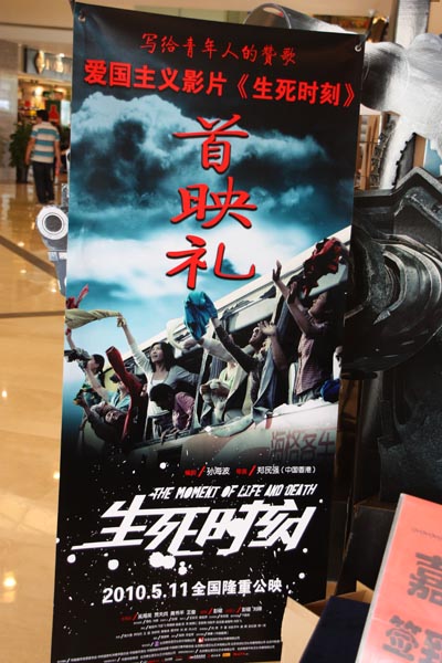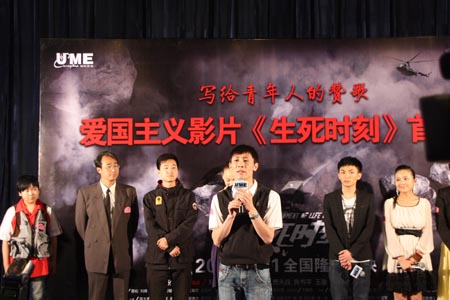 5月11日下午,為紀(jì)念汶川地震和玉樹地震的骨肉同胞,以5.12汶川大地震為背景,以展現(xiàn)當(dāng)代青年于災(zāi)難中彰顯民族大義和大愛真情,集勵志、公益和志愿行為于一體的愛國主義影片《生死時刻》全國首映禮在北京隆重舉行。首映禮以“銘記‘5.12’ 寫給青年的贊歌”為主題。