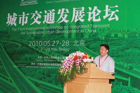 2009年5月26日-28日,由交通運(yùn)輸部主辦的“第十屆國際交通技術(shù)與設(shè)備展覽會”在北京隆重舉行,同期舉辦“2010中國交通發(fā)展論壇”及專題論壇,論壇主題為“走節(jié)能環(huán)保之路 建設(shè)綠色交通”。專題論壇包括城市公共交通發(fā)展分論壇、公路環(huán)境保護(hù)分論壇、節(jié)能減排低碳發(fā)展分論壇、新能源客車技術(shù)分論壇,分別圍繞交通運(yùn)輸行業(yè)發(fā)展的熱點(diǎn)問題展開了專題研討和交流。其中,城市公共交通發(fā)展分論壇歷時一天半時間,跨度時間最長,國內(nèi)外數(shù)十名專家學(xué)者作專題演講。