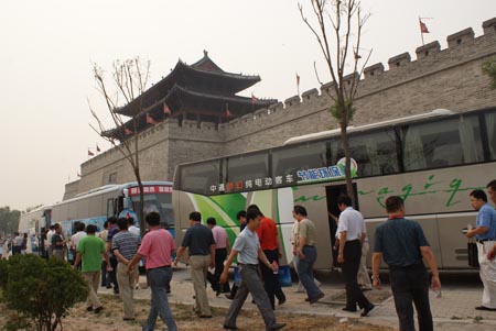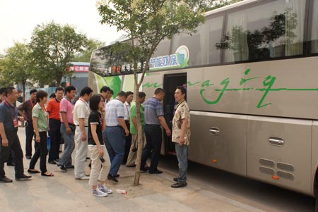為了充分向海內(nèi)外知名企業(yè)展現(xiàn)中國(guó)客車近年來的發(fā)展成果,中通客車派出了純電動(dòng)、混合動(dòng)力、傳統(tǒng)柴油車等不同動(dòng)力系統(tǒng)、不同檔次的全系列車隊(duì)服務(wù)此次大會(huì)。中通純電動(dòng)客車LCK6128EV、中通領(lǐng)航LCK6129H作為服務(wù)北京奧運(yùn)會(huì)和全運(yùn)會(huì)的明星產(chǎn)品,再一次成為了眾人關(guān)注的焦點(diǎn),眾多知名企業(yè)家爭(zhēng)先乘坐,感受它們的明星魅力。平穩(wěn)的動(dòng)力性能,豪華的內(nèi)飾,舒適的乘坐空間,成為了他們贊嘆的焦點(diǎn)。