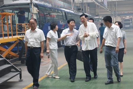 實(shí)地考察結(jié)束后,中國(guó)民間商會(huì)副會(huì)長(zhǎng)、重慶力帆控股有限公司董事長(zhǎng)尹明善等知名企業(yè)家座客中通,在中通客車董事長(zhǎng)李海平的陪同下,參觀了中通客車生產(chǎn)現(xiàn)場(chǎng),尹總對(duì)中通客車實(shí)施自主創(chuàng)新的國(guó)際化發(fā)展戰(zhàn)略表示贊同,對(duì)中通客車近年來的發(fā)展予以了充分肯定,他表示愿與中通客車在新能源產(chǎn)業(yè)的發(fā)展上不斷加強(qiáng)交流與合作,促進(jìn)雙方企業(yè)的共同進(jìn)步。
