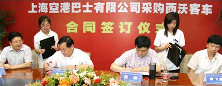 6月13日,西安西沃客車公司與上??崭郯褪坑邢薰竞炗喠?0輛VOLVO9300訂購(gòu)合同,這是繼去年簽訂35輛西沃900豪華大客車和1輛VOLVO9600豪華大客車合同后,西沃客車公司與上??崭郯褪康脑俅魏献鳌?/P>