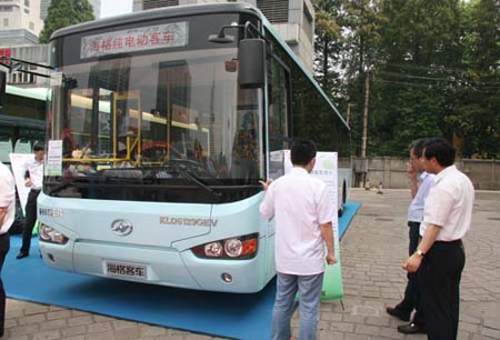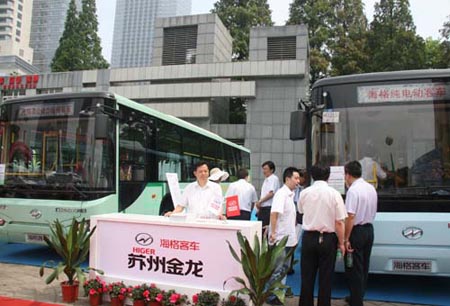 零排放、無污染純電動(dòng)城市客車、節(jié)能省油的混合動(dòng)力客車、純電動(dòng)小型轎車,以及服務(wù)世博會(huì)的電動(dòng)觀光車……6月27日-28日,南京規(guī)劃建設(shè)展覽館,一批以新能源為動(dòng)力的汽車紛紛亮相江蘇新能源汽車及零部件展洽會(huì)。其中,位列中國客車行業(yè)三甲的蘇州金龍,攜純電動(dòng)和混合動(dòng)力兩款代表性的新能源城市客車參展,引領(lǐng)綠色巴士風(fēng)尚。
