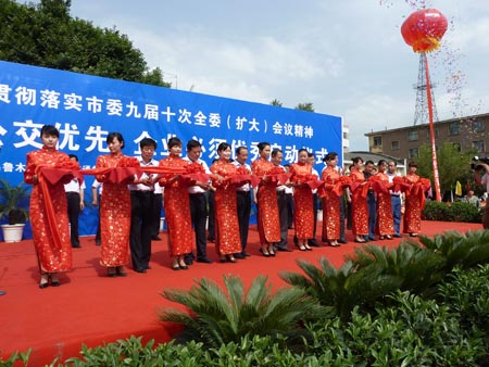 市委副書記、組織部部長焦亦民作了重要講話,市公共交通集團(tuán)有限公司董事長陸建春代表公交集團(tuán)致辭。陸建春在講話中對新疆中通客車有限公司在時間緊、任務(wù)重的情況下,克服重重困難,在最短的時間內(nèi),保質(zhì)保量、按期交付了首批車輛。此舉為政府實現(xiàn)向市民的承諾贏得了時間和聲譽(yù)。對此,陸總代表公交企業(yè)向新疆中通公司乙士祥總經(jīng)理及全體員工表示感謝。