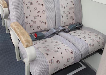 現(xiàn)有客車座椅,一般都以成人的標(biāo)準(zhǔn)而設(shè)計,而恒通校車的座椅是專門根據(jù)小學(xué)生的體形特點而量身打造。按照校車新標(biāo)準(zhǔn)規(guī)定,結(jié)合小學(xué)生的身量特點,恒通校車座椅寬敞,墊寬大于400mm,椅深350mm,大大提高了學(xué)生乘坐的舒適性。如校車因特殊狀況緊急剎車時,身體的前傾慣性容易使小學(xué)生碰撞前方椅座靠背造成傷害,恒通校車座位靠背高度710mm,座間距超過550mm,在滿足乘坐舒適度的同時,提高了座位的安全性。同時,每個座位都配有安全帶,更能在車輛行駛過程中為小學(xué)生提供安全保證。