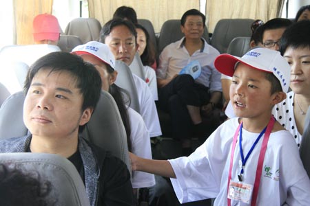 在歌聲中,謝飛鳴書(shū)記和身邊的小朋友親切交談起來(lái)。來(lái)自玉樹(shù)縣下拉秀鎮(zhèn)中心寄校的小朋友仁清松毛說(shuō)地震給家里造成的損失很大,房屋裂縫無(wú)法居住,現(xiàn)在還只能住帳篷。桑丁求忠小朋友也說(shuō)地震給他們本來(lái)就不富裕的家庭帶來(lái)很大損失和負(fù)擔(dān),但他們對(duì)政府和各界的捐助和幫扶也非常感激,能有機(jī)會(huì)來(lái)到世博會(huì)更是她做夢(mèng)都沒(méi)想過(guò)的事。在舒適的海格大巴上,小朋友們漸漸地不再拘謹(jǐn),對(duì)身邊的好奇事物問(wèn)個(gè)不停。