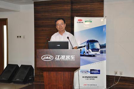 江淮客車副董事長黨委書記李永祥先生致歡迎詞。李總首先介紹了江汽集團現(xiàn)在的規(guī)模、今年上半年的銷售狀況和未來的發(fā)展目標。隨后,李總向與會嘉賓通報了江淮客車今年上半年所取得的可喜成績。今年1—7月份,江淮客車版塊共銷售客車4828臺,銷售額達到26.7億元,位居客車行業(yè)前三甲。與去年同比增長85.3%,增速位居行業(yè)第一名。江淮客車所取得的驕人成績離不開廣大客戶的鼎力支持,召開此次座談會的目的也是讓客戶對企業(yè)和產(chǎn)品有更深的了解,進一步深化雙方的合作關系。