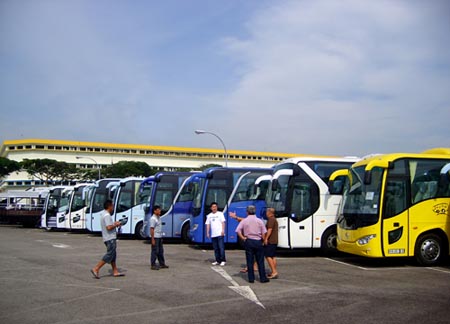 新加坡是一個美麗的花園城市,這里生活著近500萬居民,同時每年還吸引來自世界各地成千上萬的游客,因此導(dǎo)致了其對客車的大量需求,而中國客車正以良好的性價比不斷地被當(dāng)?shù)厝怂邮堋?jù)悉,從2010年8月末起,廈門金旅7米至12米的各種不同車型,近30輛大中型豪華客車將陸續(xù)分批裝船前往新加坡。負責(zé)該市場的金旅相關(guān)人員告訴記者,近年來,來自中國制造的汽車逐漸增多,其中性價比高、品牌影響力良好的廈門金旅客車在當(dāng)?shù)仡H受歡迎。但凡是進入到當(dāng)?shù)厥袌龅暮细窨蛙嚤仨毥?jīng)過新加坡當(dāng)?shù)卣J證機構(gòu)LTA的標準測試與檢驗,而來自中國廈門的金旅客車,不僅順利取得了該認證機構(gòu)的所有認證,還得到了該認證機構(gòu)對金旅客車“中國車的價格,日本車的品質(zhì)”的高度褒獎。