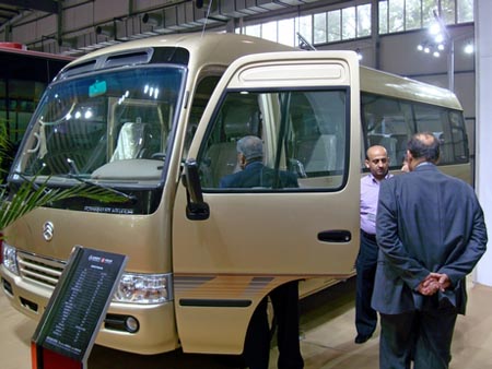 外國賓客參觀金旅“混血金剛”現(xiàn)代考斯特