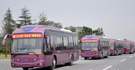 10月11日,由湖北荊門(mén)市公交總公司投入900萬(wàn)元從武漢引進(jìn)的22輛揚(yáng)子江牌豪華空調(diào)公交巴士在荊門(mén)生態(tài)運(yùn)動(dòng)公園亮相,這22輛豪華空調(diào)公交巴士將在近期辦理完車(chē)牌手續(xù)后,成為湖北省第十三屆運(yùn)動(dòng)會(huì)的服務(wù)用車(chē),將承擔(dān)省十三運(yùn)會(huì)期間接送運(yùn)動(dòng)員、裁判員、志愿者以及工作人員等。