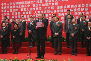 第一排(左1)重慶市人民政府黃奇帆市長(zhǎng) (左2)國(guó)家知識(shí)產(chǎn)權(quán)局田力普局長(zhǎng)
