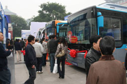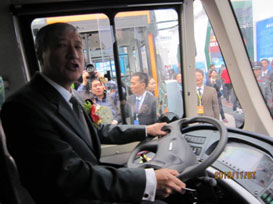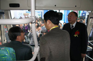 隨后,黃奇帆市長(zhǎng)和田力普局長(zhǎng)等國(guó)家30個(gè)部委領(lǐng)導(dǎo)與重慶市相關(guān)部門領(lǐng)導(dǎo)及新聞媒體一行重點(diǎn)參觀了為中國(guó)低碳事業(yè)做出突出貢獻(xiàn)的恒通客車。恒通客車新能源項(xiàng)目負(fù)責(zé)人田野向各位領(lǐng)導(dǎo)介紹了恒通新能源客車自主知識(shí)產(chǎn)權(quán)方面所取得的成績(jī),其中詳細(xì)介紹了氣/電混合動(dòng)力客車和純電動(dòng)客車,面對(duì)重慶彎多彎急、坡多坡陡的復(fù)雜路況,在44℃的連續(xù)高溫、2.5公里20%的連續(xù)坡道、30%的高峰超載的運(yùn)營(yíng)條件下,恒通氣/電混合動(dòng)力客車有限實(shí)現(xiàn)燃料節(jié)省率大于24%,能耗降低24%,廢氣排放量減少30%左右,實(shí)實(shí)在在實(shí)現(xiàn)了節(jié)能減排,降低了公交公司的運(yùn)營(yíng)成本,因其技術(shù)指標(biāo)過硬,性能穩(wěn)定,再次獲得重慶公交集團(tuán)100臺(tái)氣/電、20臺(tái)純電動(dòng)以及湖州公交集團(tuán)的批量訂單。