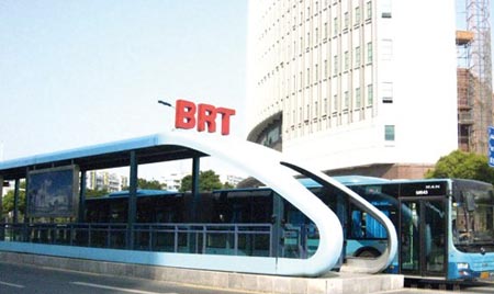 目前,國內(nèi)開通BRT(快速公交系統(tǒng))的城市不在少數(shù),包括北京、廣州、濟(jì)南等,無論是城市規(guī)模,還是經(jīng)濟(jì)實(shí)力,均不占優(yōu)的江蘇常州卻成為其中的樣板。在今年4月舉辦的第九屆中國土木工程詹天佑獎(jiǎng)?lì)C獎(jiǎng)大會(huì)上,常州BRT一號(hào)線憑借科學(xué)、創(chuàng)新的設(shè)計(jì)理念,成為迄今為止首個(gè)獲得“詹天佑獎(jiǎng)”的公共交通項(xiàng)目?! ?/P>
