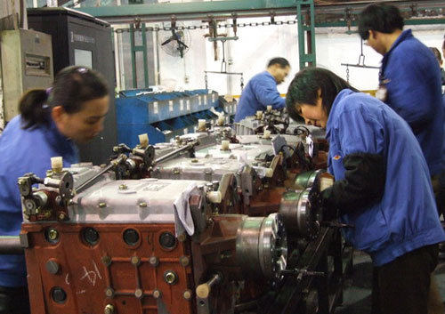 綦江齒輪傳動(dòng)有限公司員工正在裝配變速器總成