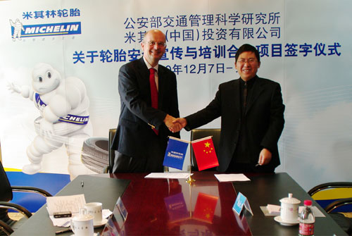 近日,米其林(中國(guó))投資有限公司與公安部交通管理科學(xué)研究所達(dá)成了關(guān)于輪胎安全宣傳與培訓(xùn)的合作協(xié)議。公安部交通管理科學(xué)研究所孫正良副所長(zhǎng)與米其林(中國(guó))投資有限公司總裁夏逸夫在無(wú)錫共同簽署該協(xié)議。來(lái)自交通管理科學(xué)研究所的領(lǐng)導(dǎo)與米其林中國(guó)的部分高管也出席了這一簽約儀式。