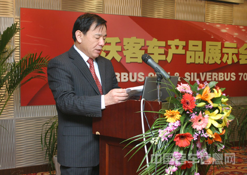 西沃客車公司總經(jīng)理梁超軍在展示會上致辭